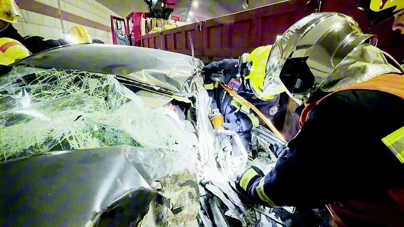 10月21日下午,金州区一隧道内发生一起严重交通事故,一辆大挂车与轿车猛烈碰撞,导致轿车严重变形,车内两人被困昏迷,生命垂危。金州区消防救援大队接警后火速出击,经过28分钟的紧张精准施救,成功将两名被困群众全部救出。