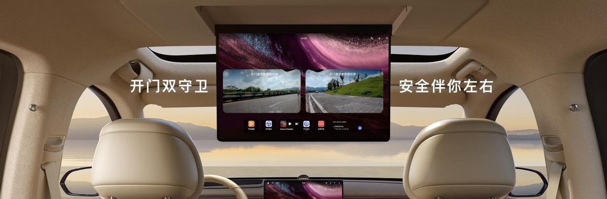 全新问界M7全新升级10.25英寸副驾屏,并搭载开门守卫功能[16],守护每一次下车安全。首次搭载17.3英寸3K高清后排娱乐屏[17],支持触控、遥控和语音等多种便捷操控。后排娱乐屏采用防夹安全设计,并且提供双安全守卫功能,有效预防“开门杀”,让安全始终伴用户左右。中控悬浮屏、副驾娱乐屏与后排娱乐屏支持三指滑动多屏无缝流转,每座皆享专属视听,带来互不干扰的座舱交互体验。